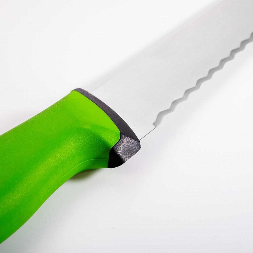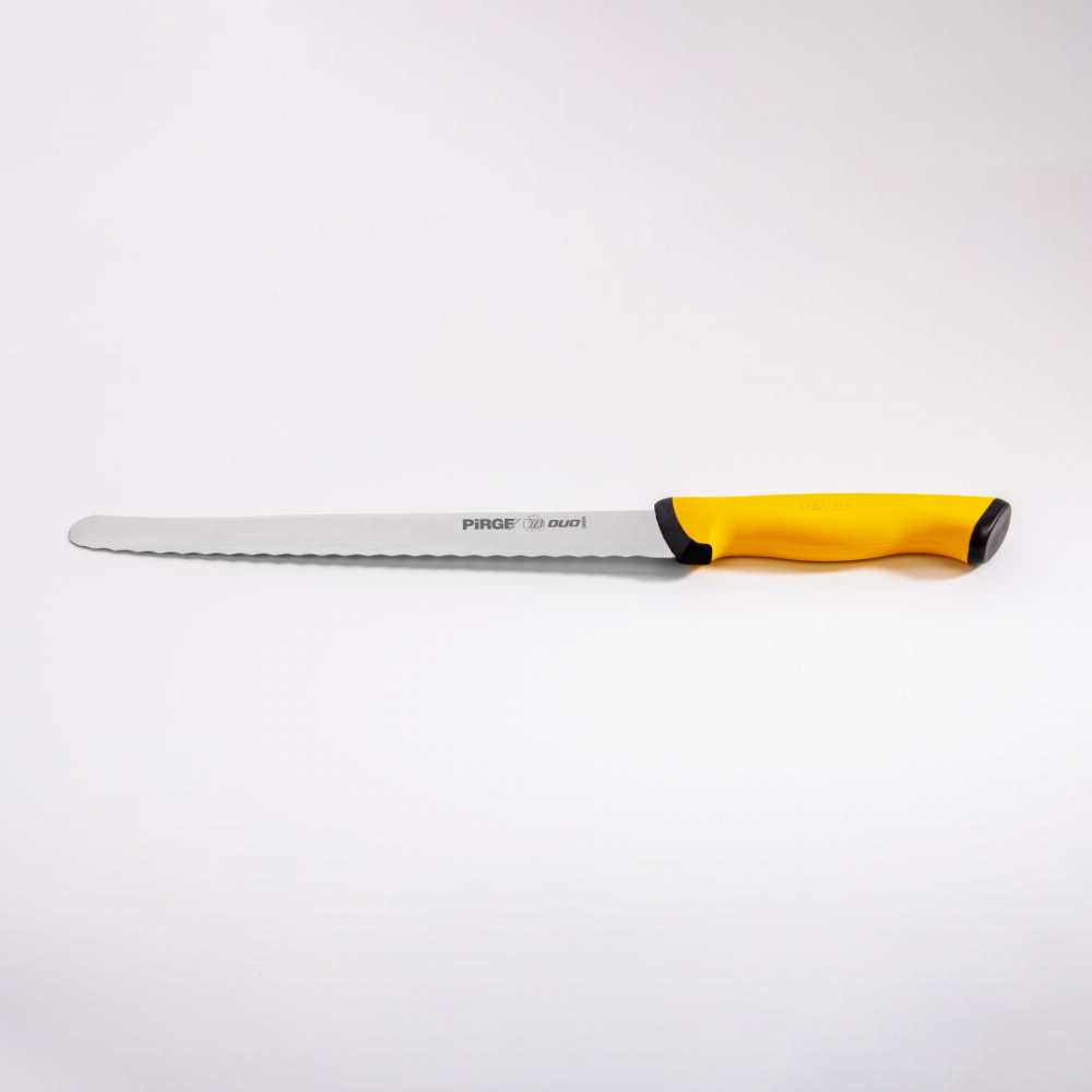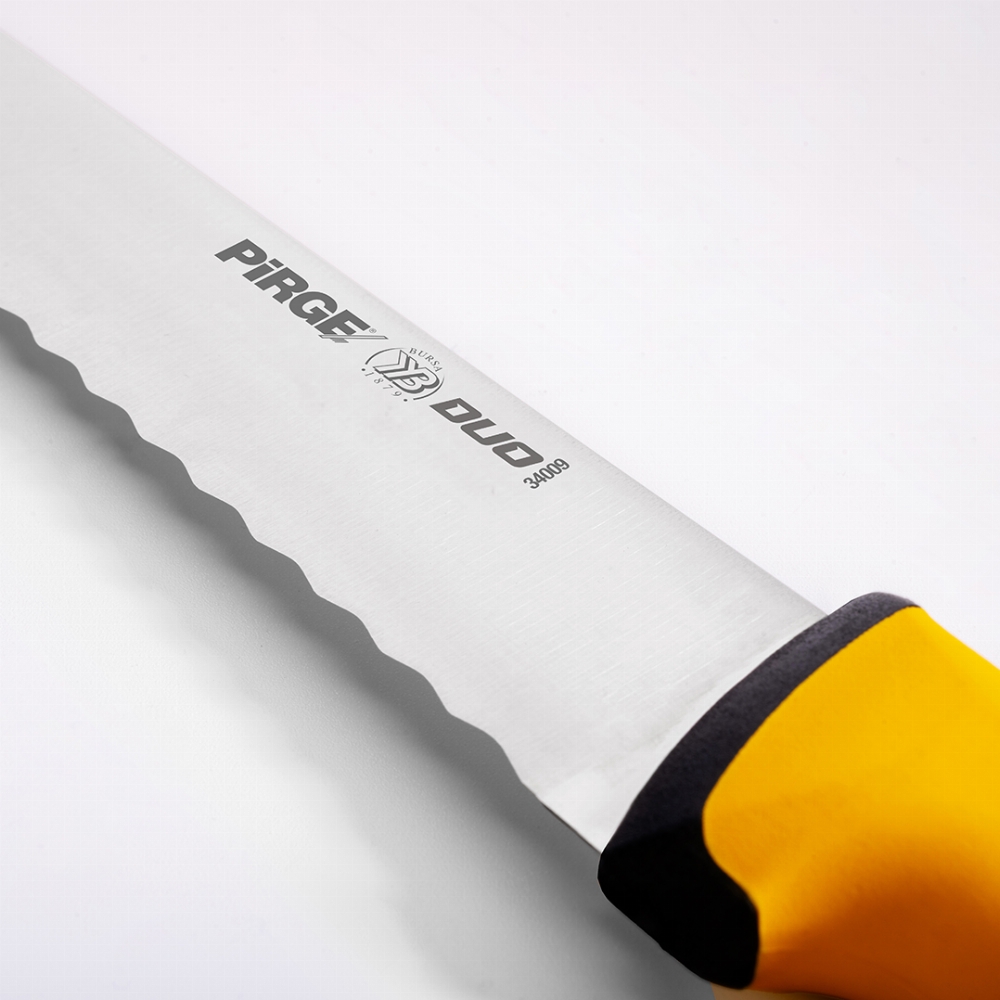 Duo Ekmek Bıçağı Pro 22,5 cm ile fırından yeni çıkmış sıcacık ekmekleri bile kesmek çok kolay olacak. Güçlü çeliği ve dişli ağız yapısı sayesinde çıtır çıtır ekmekleri bile yağ gibi kestiğini göreceksiniz. Domates kesmekte de çok başarılı olacaktır, bizden söylemesi