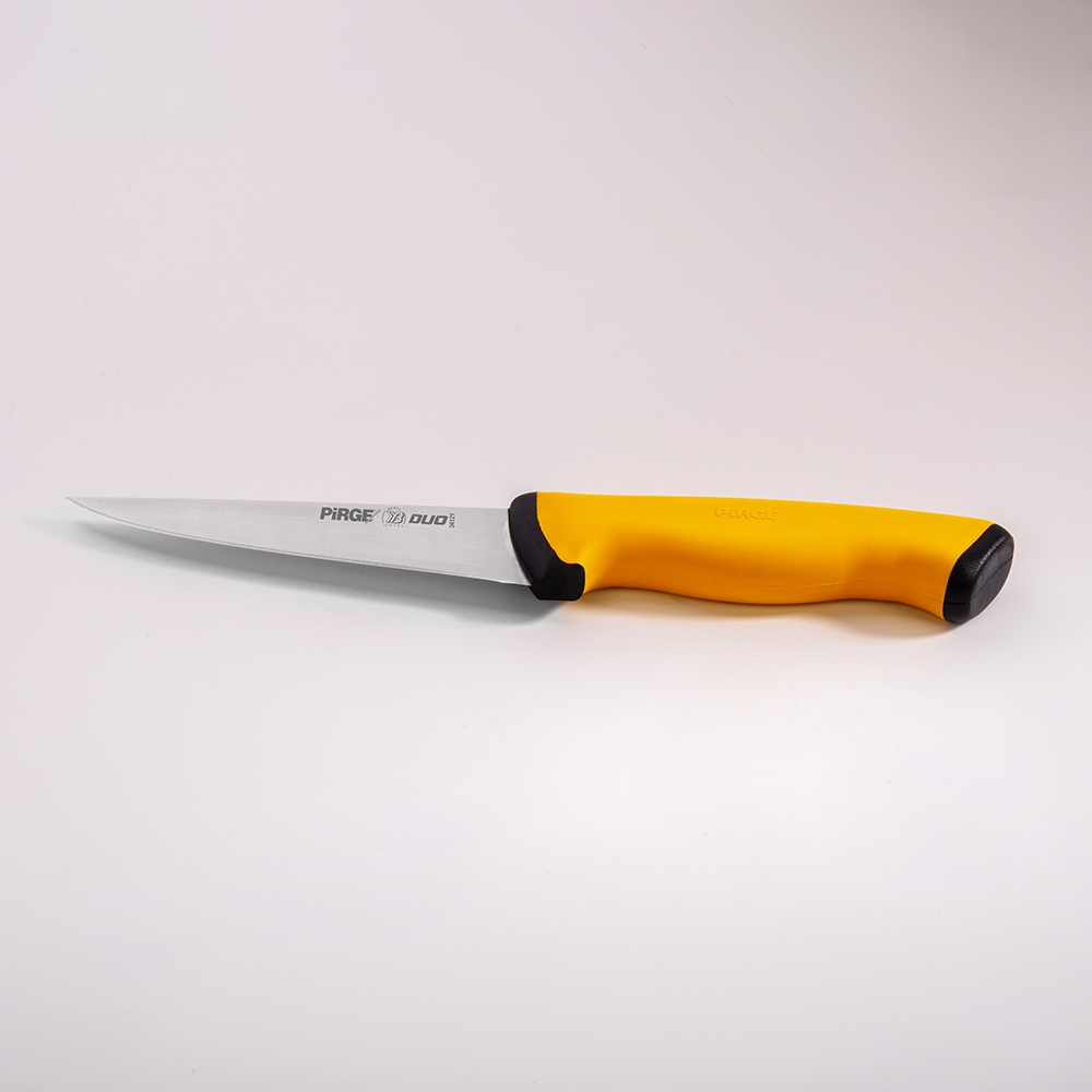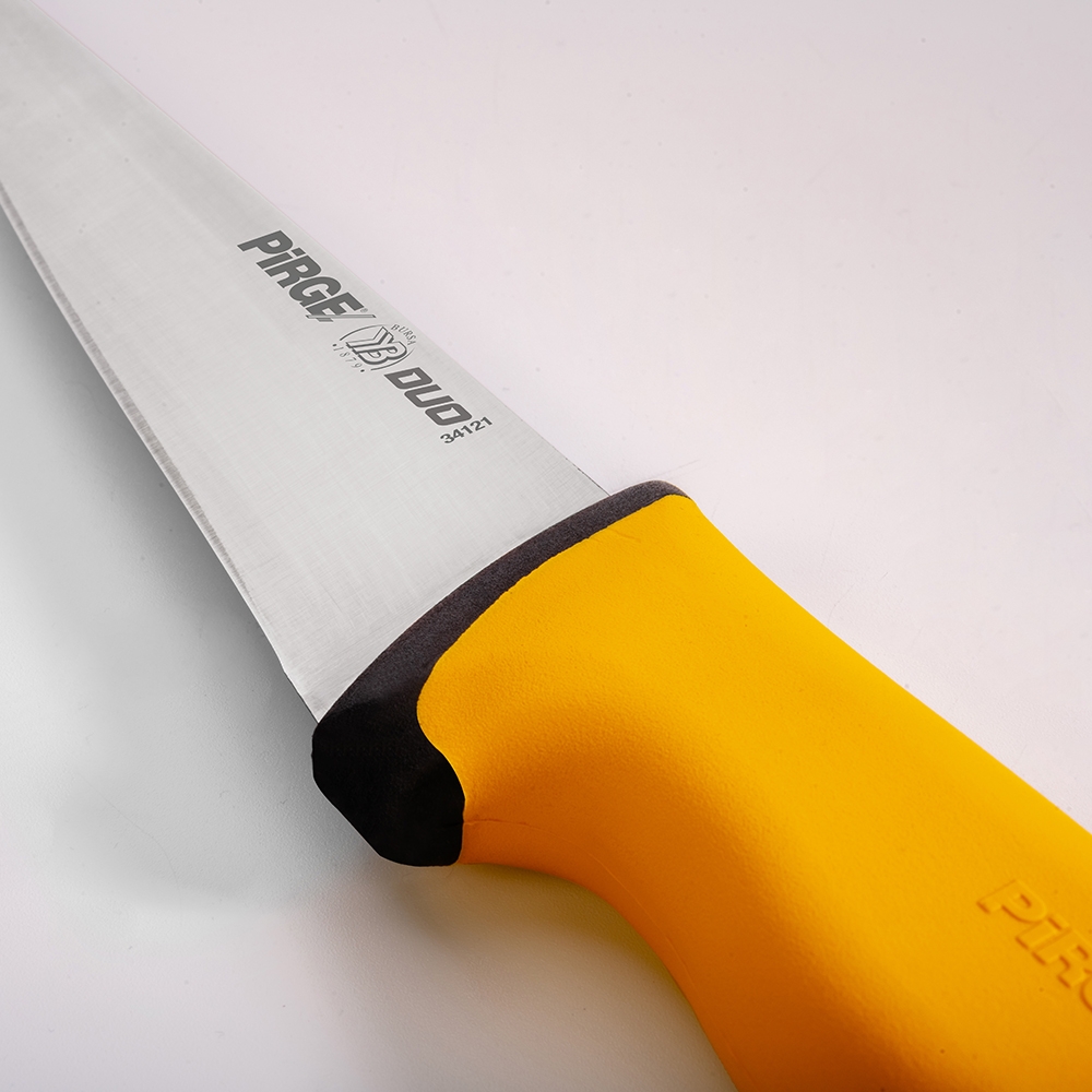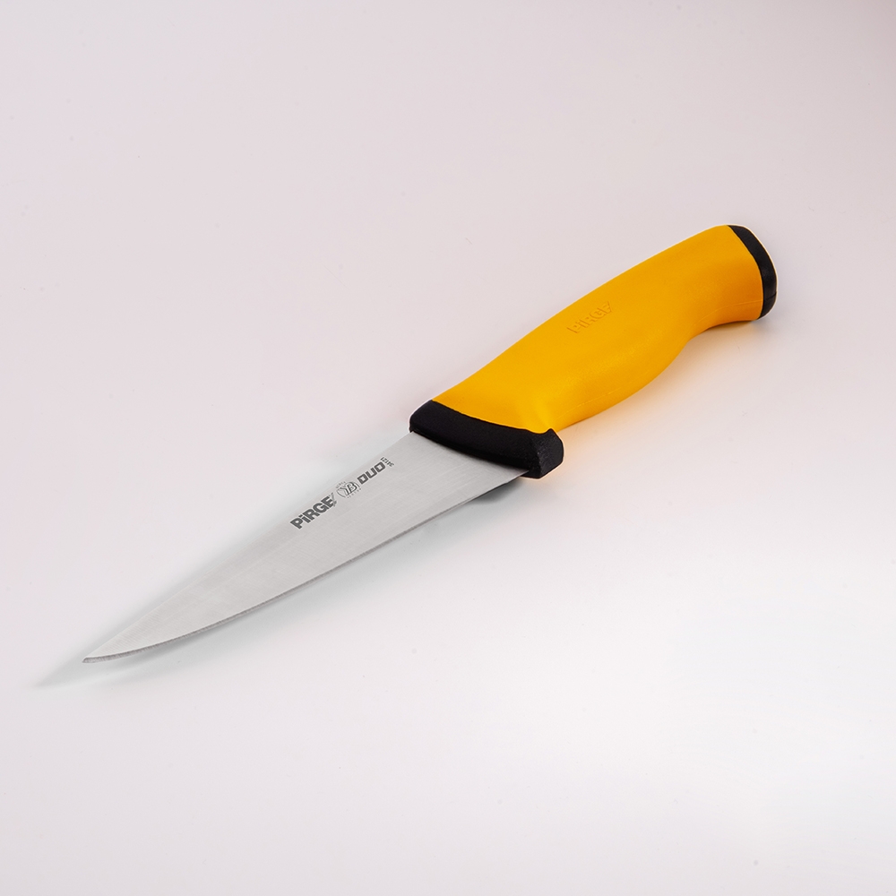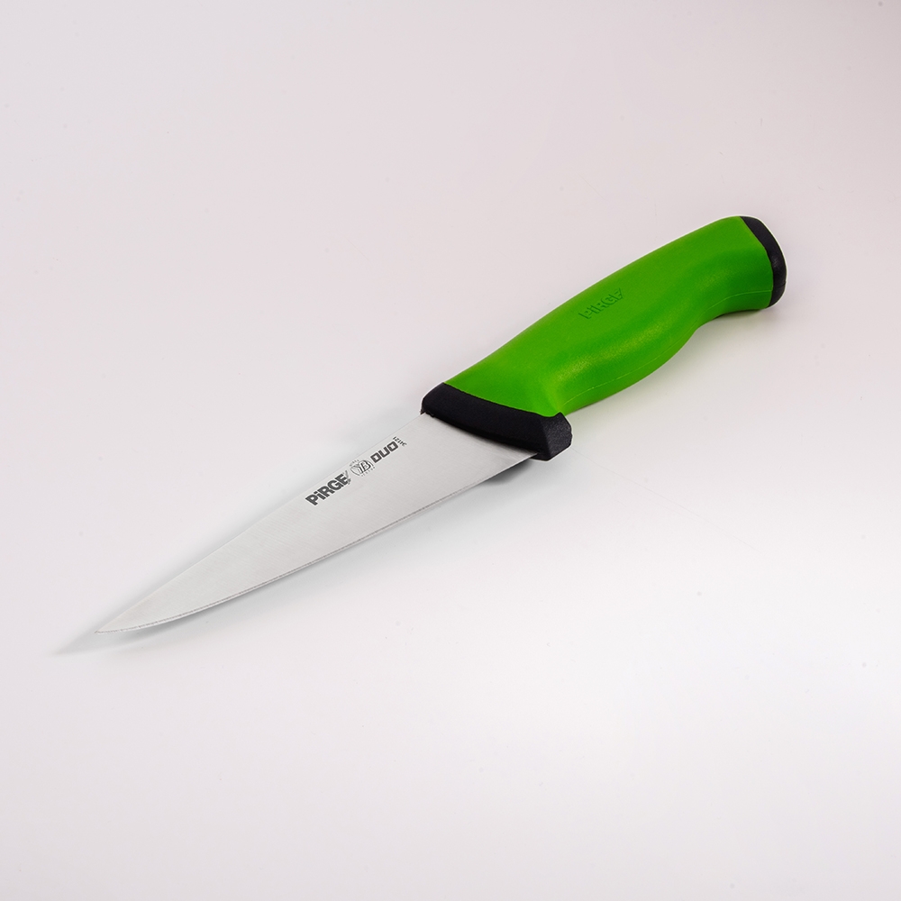 Duo Kasap Bıçağı No.1 Sivri 14,5 cm ürünümüz güçlü çelik yapısı, üst kısımda kullanılan özel plastik sayesinde yumuşak ve kaymayan bir tutuş, iç kısımda kullanılan sert plastik sayesinde hijyen ve sağlamlık sağlayan sap kısmı sayesinde zorlu işlerin üstesinden kolaylıkla gelecektir! Kullanımınıza uygun bir ölçü, kalınlık ve sap modeli seçtiğinizden emin olun, etleri ve sebzeleri ne kadar rahat kestiğinizi gördüğünüzde bize hak vereceksiniz.