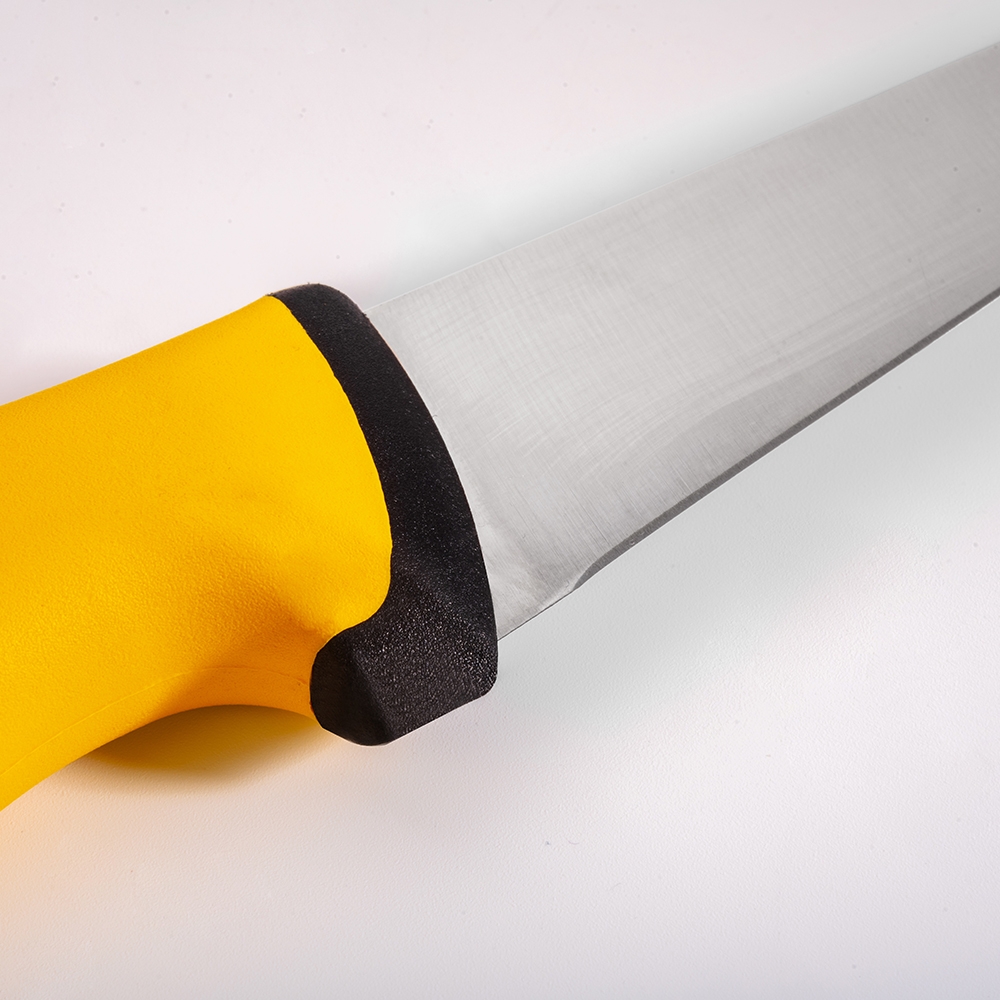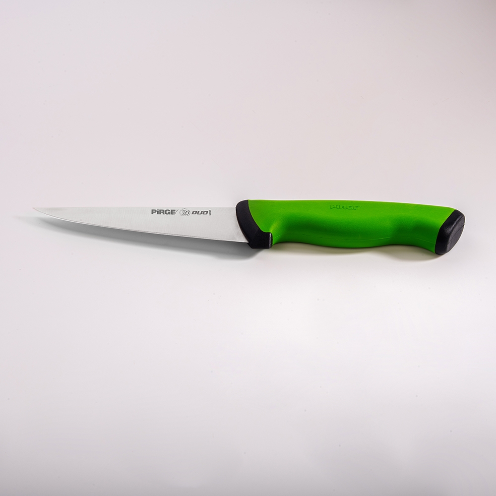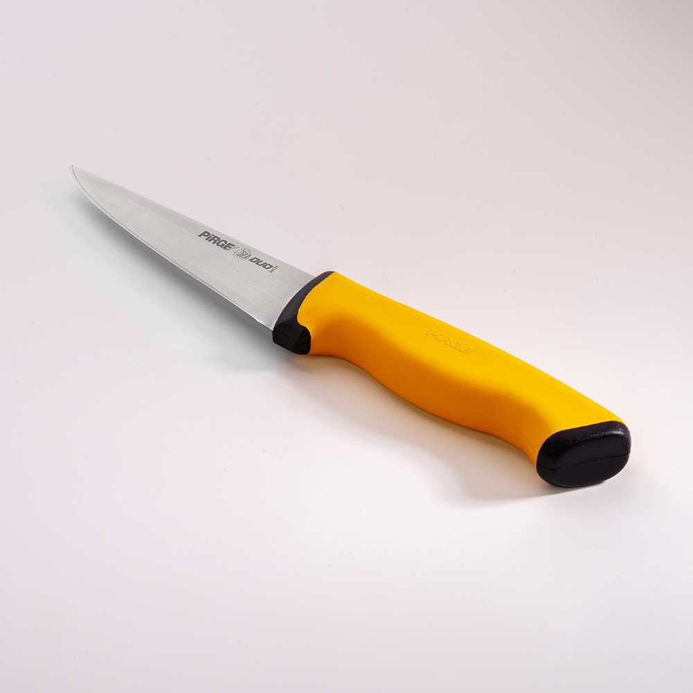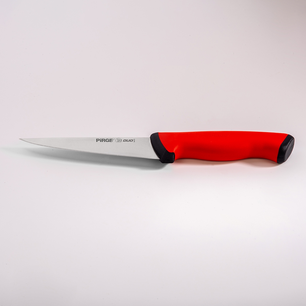 Duo Kasap Bıçağı No.1 Sivri 14,5 cm ürünümüz güçlü çelik yapısı, üst kısımda kullanılan özel plastik sayesinde yumuşak ve kaymayan bir tutuş, iç kısımda kullanılan sert plastik sayesinde hijyen ve sağlamlık sağlayan sap kısmı sayesinde zorlu işlerin üstesinden kolaylıkla gelecektir! Kullanımınıza uygun bir ölçü, kalınlık ve sap modeli seçtiğinizden emin olun, etleri ve sebzeleri ne kadar rahat kestiğinizi gördüğünüzde bize hak vereceksiniz.