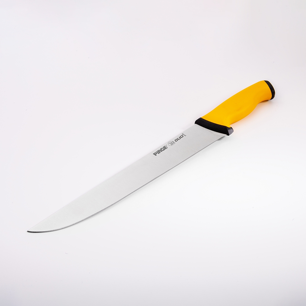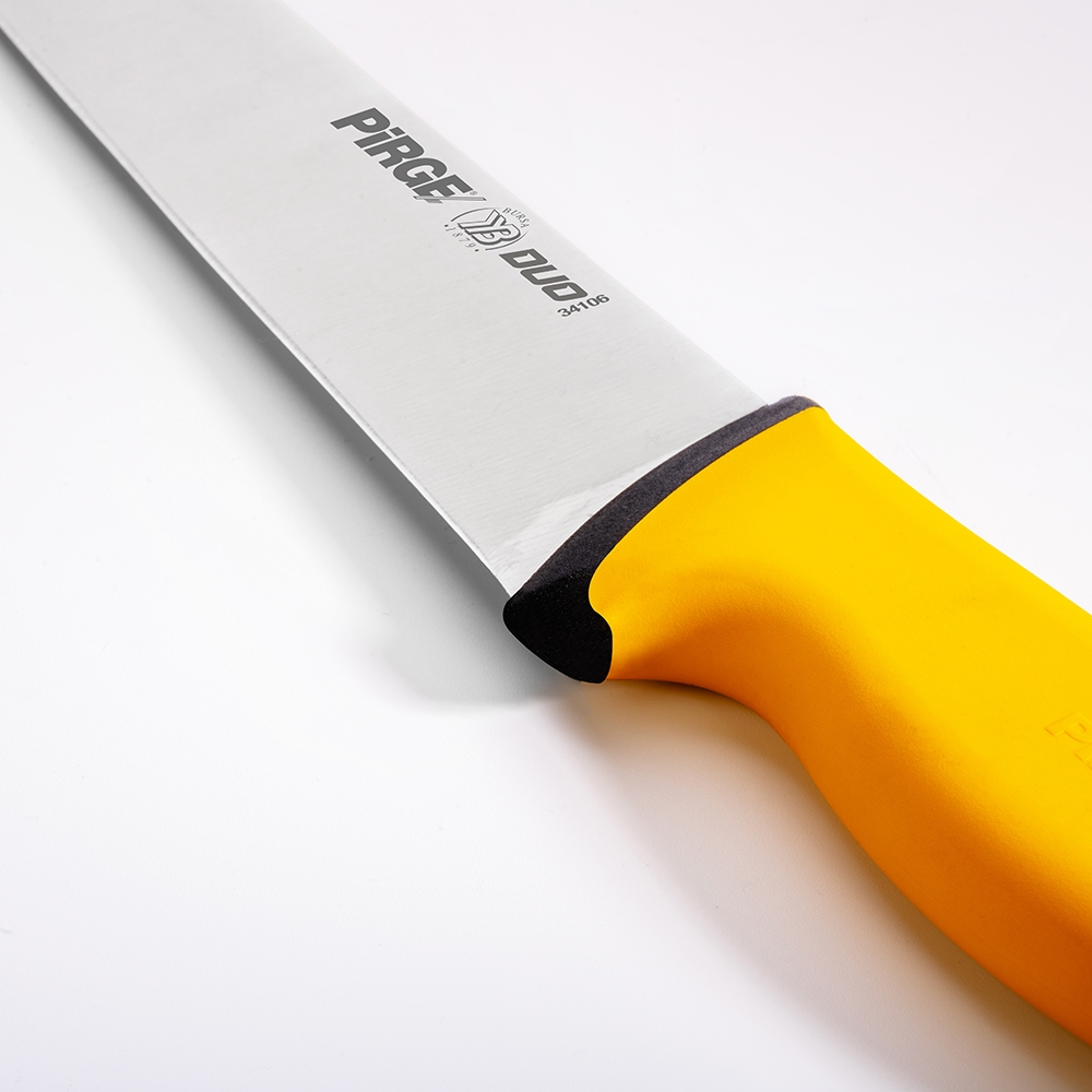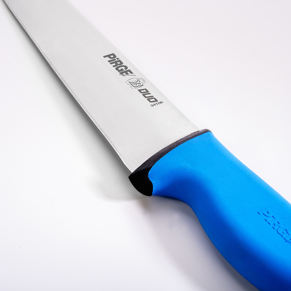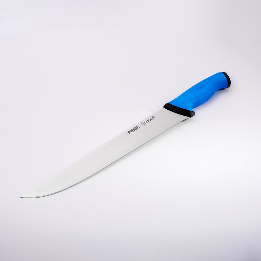Duo Kasap Bıçağı No.6 30 cm ürünümüz güçlü çelik yapısı, üst kısımda kullanılan özel plastik sayesinde yumuşak ve kaymayan bir tutuş, iç kısımda kullanılan sert plastik sayesinde hijyen ve sağlamlık sağlayan sap kısmı sayesinde zorlu işlerin üstesinden kolaylıkla gelecektir! Kullanımınıza uygun bir ölçü, kalınlık ve sap modeli seçtiğinizden emin olun, etleri ve sebzeleri ne kadar rahat kestiğinizi gördüğünüzde bize hak vereceksiniz.