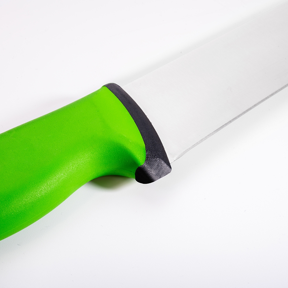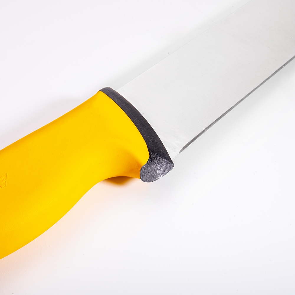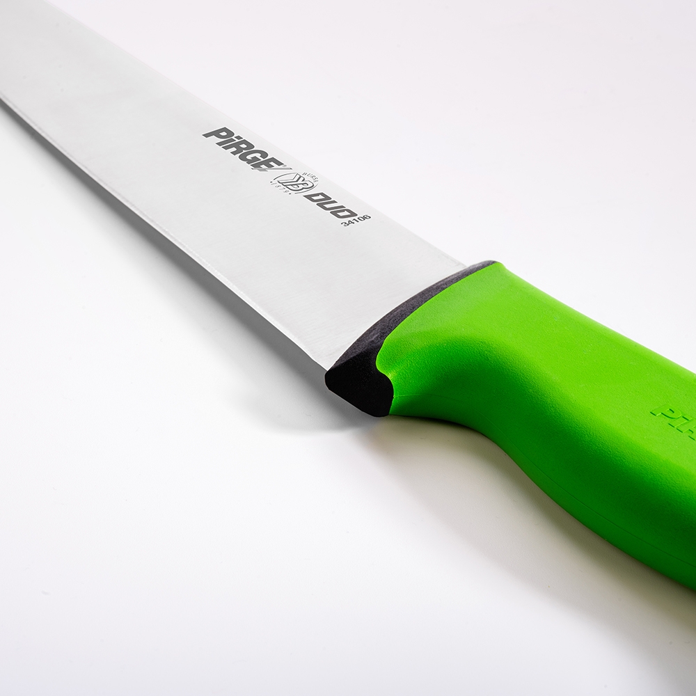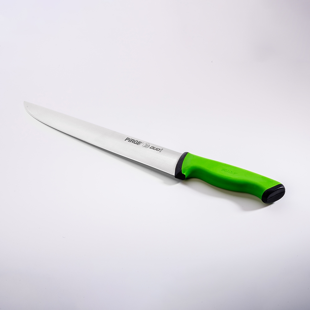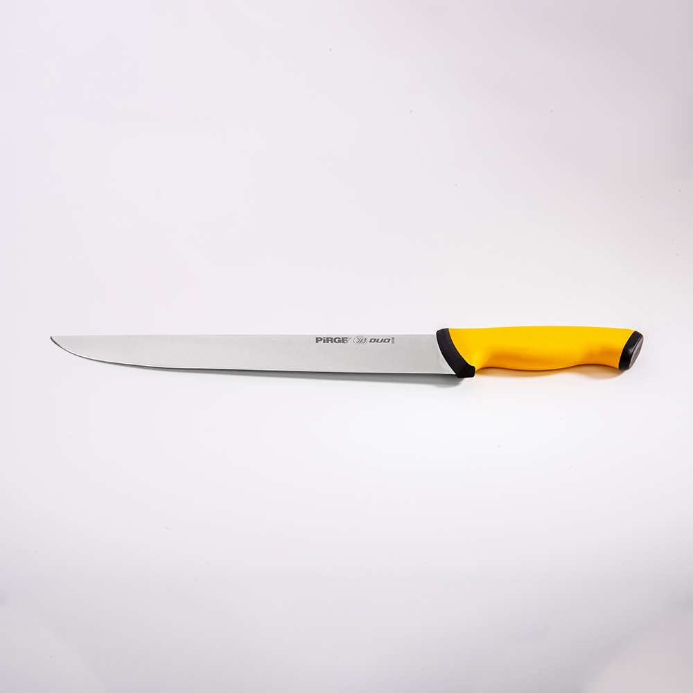 Duo Kasap Bıçağı No.6 30 cm ürünümüz güçlü çelik yapısı, üst kısımda kullanılan özel plastik sayesinde yumuşak ve kaymayan bir tutuş, iç kısımda kullanılan sert plastik sayesinde hijyen ve sağlamlık sağlayan sap kısmı sayesinde zorlu işlerin üstesinden kolaylıkla gelecektir! Kullanımınıza uygun bir ölçü, kalınlık ve sap modeli seçtiğinizden emin olun, etleri ve sebzeleri ne kadar rahat kestiğinizi gördüğünüzde bize hak vereceksiniz.