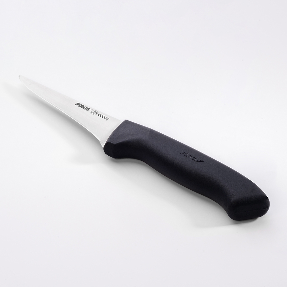 Ecco Sıyırma Bıçağı 12,5 cm kemiksiz etlere ihtiyacınız olduğunda yardımınıza koşacak. Burun kısmına doğru daralan çelik yapısı sayesinde tertemiz bir iş çıkarmanızda rolü büyük olacak.