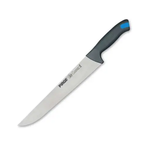 Gastro Kasap Bıçağı No.5 25 cm ürünümüz güçlü çelik yapısı ve hijyenik, sağlam plastik sap kısmı sayesinde zorlu işlerin üstesinden kolaylıkla gelecektir! Sapın sonunda konumlandırılmış renk kodları ile bıçaklarınız kullanım amaçlarına göre sizler tarafından kolayca renklendirilebilecektir. Kullanımınıza uygun bir ölçü, kalınlık ve sap modeli seçtiğinizden emin olun, etleri ve sebzeleri ne kadar rahat kestiğinizi gördüğünüzde bize hak vereceksiniz.