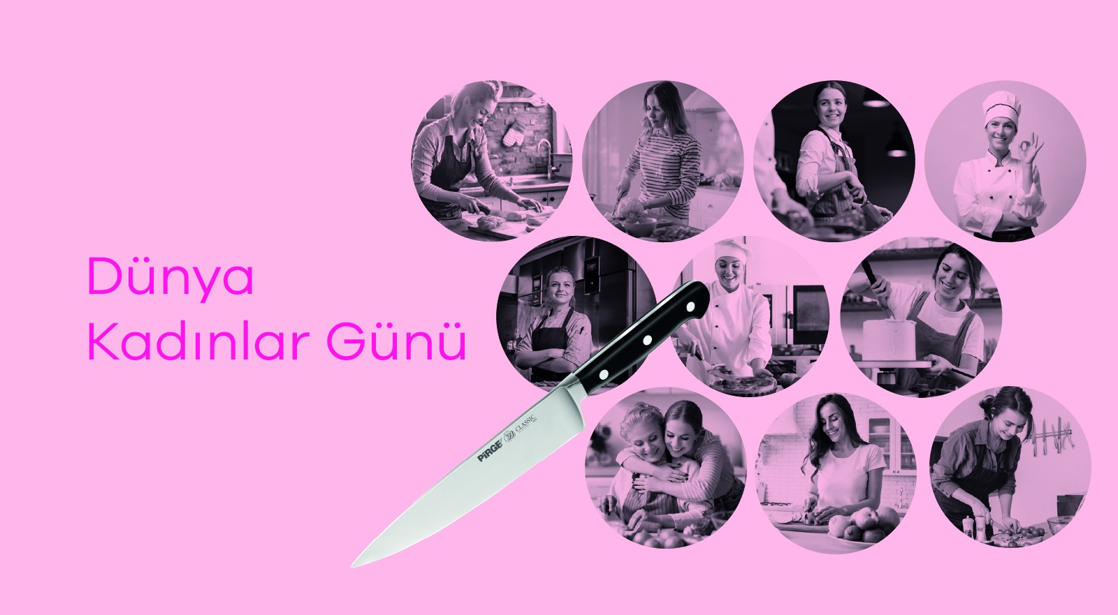 Dünya Emekçi Kadınlar Günü olarak da adlandırılan Kadınlar Günü, her yıl ülkemizde kutlanan en önemli günler arasında yer alıyor. Bu özel günde kadınlara birbirinden farklı hediyeler alınıp sürprizler yapılıyor. 8 Mart Dünya Kadınlar Günü, hediyeler konusunda klasikleşen fikirlerin dışına çıkmaya başlıyor. Sıradan hediyelere nazaran daha anlamlı, fonksiyonel ve kadınların hoşuna giden bu hediyeler daha fazla tercih ediliyor. Klasik hediyelerden sıyrılarak mutfağın zarif sanatkarları kadınlarımızın el ergonomilerine özel tasarlanan bıçaklarımızı sizler için bir araya getirdik. Lezzet ustaları kadınlara, üzerinde isminin yazdığı kişiselleştirilmiş bir bıçak hediye etmek hem kusursuz hem de zamansız bir hediye olarak akıllarda kalacaktır. Mutfakta şahane et yemekleri yapan kadınlara şef bıçakları, et bıçakları hediye edebilirken, pasta yaparken krema ve kekin muhteşem uyumunu sağlamak için pasta paleti, çocuklarına sağlıklı meyveler soymak isteyen kadınlarımıza meyve bıçakları, mis kokulu ekmekleri keyifle dilimlemek için ekmek bıçakları bu anlamlı gün için muhteşem bir hediye fikri olabilir. Keskinlik, Paslanmazlık ve Tasarımın tek adresi Pirge’nin bileme ustası kadınlarından sizlere ulaşan büyük bir mutluluk… Kadınlar Günümüz Kutlu Olsun!