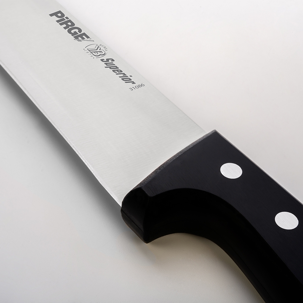 Superior Kasap Bıçağı No.6 30 cm ürünümüz kalın ve güçlü çelik yapısı, ABS plastik, üç perçinle sabitlenmiş sağlam sap kısmı sayesinde işlerinizi çok kolaylaştıracaktır! Kullanımınıza uygun bir ölçü, kalınlık ve sap modeli seçtiğinizden emin olun, etleri ve sebzeleri ne kadar rahat kestiğinizi gördüğünüzde bize hak vereceksiniz.