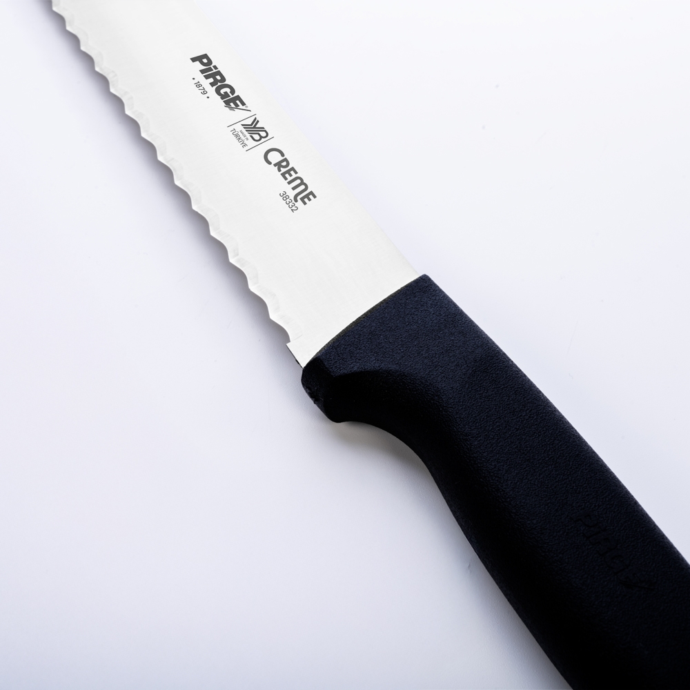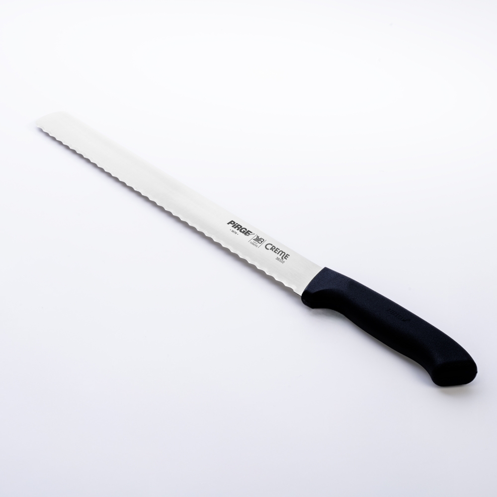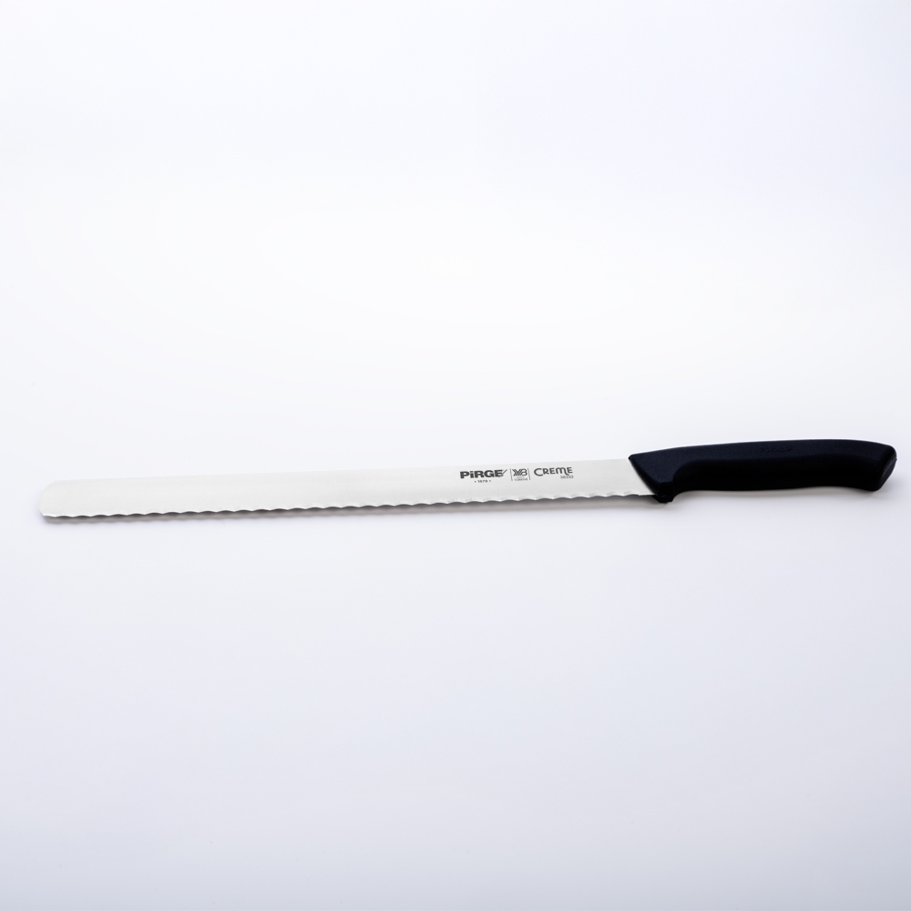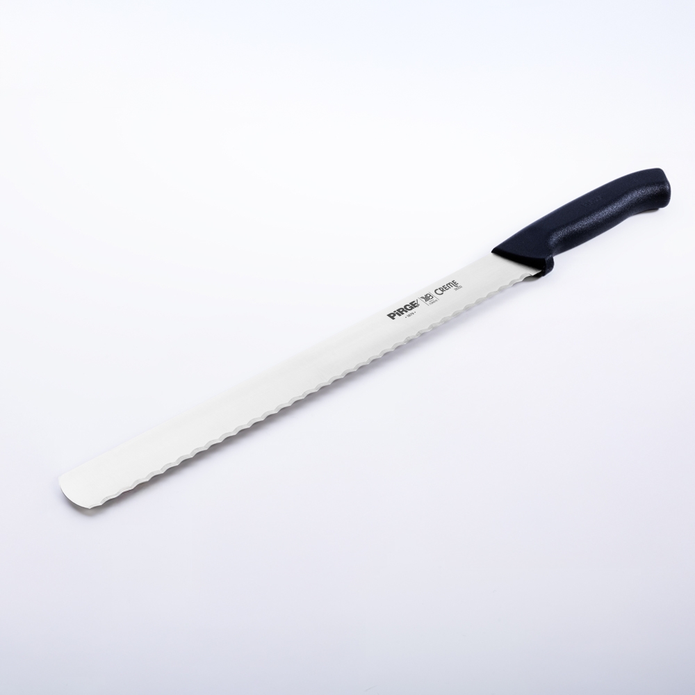 Creme Dişli Dilimleme Bıçağı 30 cm ile kekleri, pastaları ve her çeşit unlu mamülleri kolaylıkla kesebileceksiniz. Taze ya da bayat farketmez, ihtiyacınıza uygun boy ve diş yapısına karar vermek için kategori sayfasına göz atmayı unutmayın.