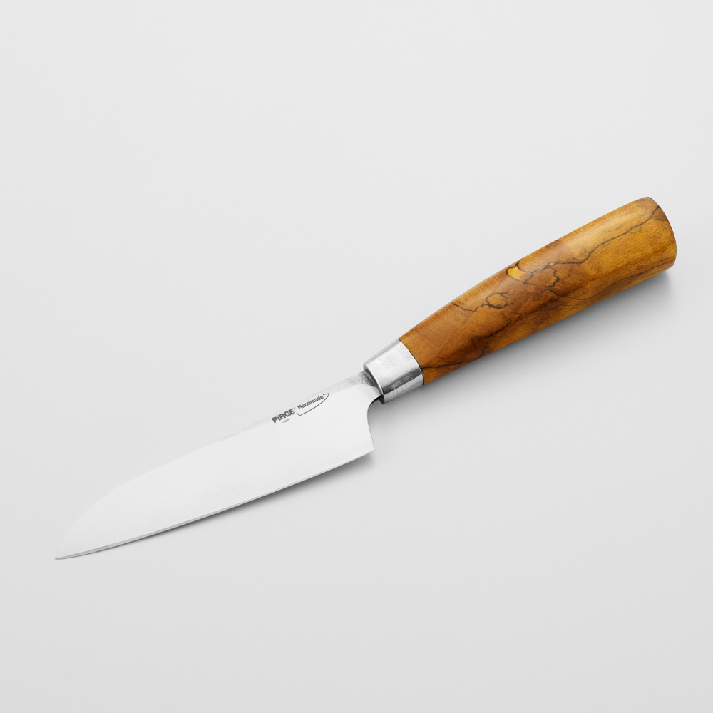 Pirge Handmade Amber Sebze Bıçağı 11 cm x KROP, N690 çeliğinin üstün keskinliğini kayın ağacının sıra dışı renkleriyle birleştiriyor. Teknoloji, el işçiliği ve üstün malzemeleri bir araya getiren tasarımıyla küçük formda büyük ve renkli bir keskinlik deneyimi sunuyor.