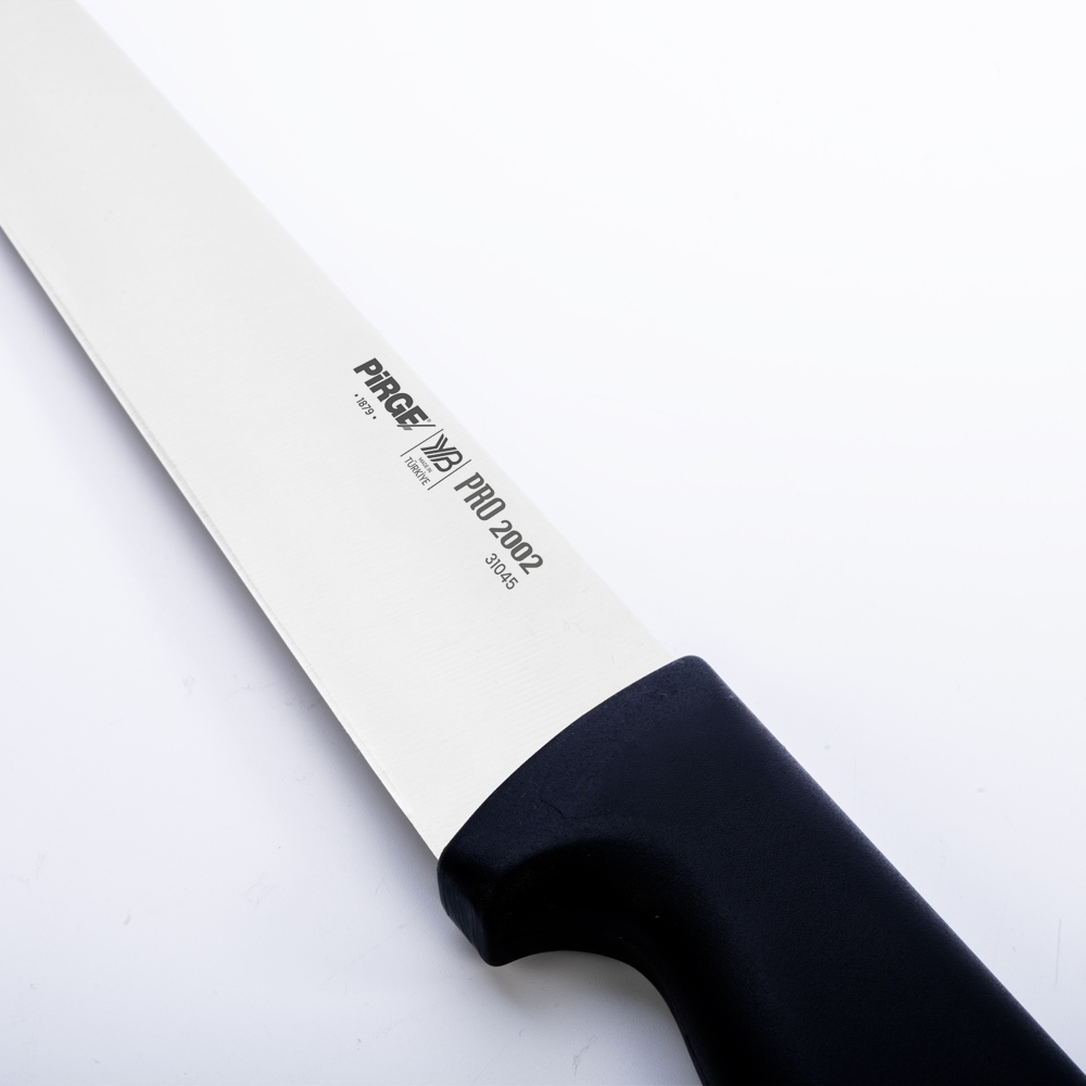 Pro 2002 Kasap Bıçağı No.5 25 cm ürünümüz kalın ve güçlü çelik yapısı, hijyenik plastik, sağlam sap kısmı sayesinde işlerinizi çok kolaylaştıracaktır! Kullanımınıza uygun bir ölçü, kalınlık ve sap modeli seçtiğinizden emin olun, etleri ve sebzeleri ne kadar rahat kestiğinizi gördüğünüzde bize hak vereceksiniz.
