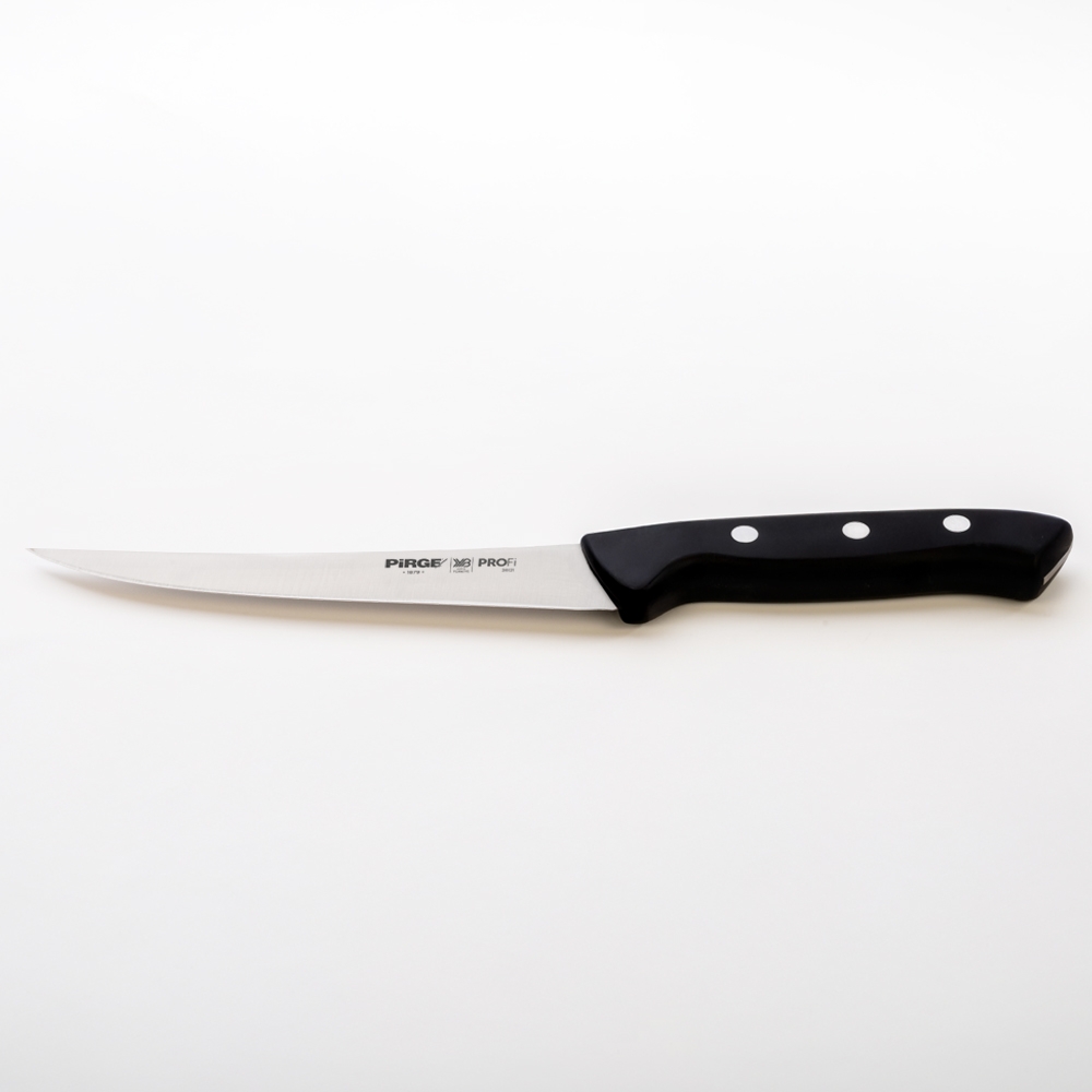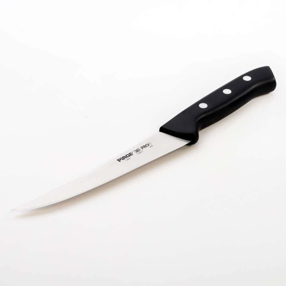 Profi Kıvrık Sıyırma Bıçağı Yarı Esnek 15 cm kemiksiz etlere ihtiyacınız olduğunda yardımınıza koşacak. Burun kısmına doğru daralan çelik yapısı sayesinde tertemiz bir iş çıkarmanızda rolü büyük olacak.