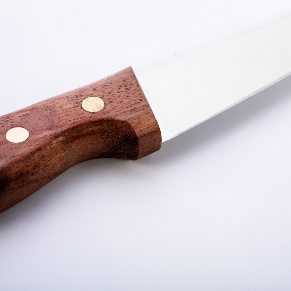 Rose Kasap Bıçağı No.0 12,5 cm ürünümüz kalın ve güçlü çelik yapısı, doğal gül ağacı, üç perçinle sabitlenmiş sağlam sap kısmı sayesinde işlerinizi çok kolaylaştıracaktır! Kullanımınıza uygun bir ölçü, kalınlık ve sap modeli seçtiğinizden emin olun, etleri ve sebzeleri ne kadar rahat kestiğinizi gördüğünüzde bize hak vereceksiniz.