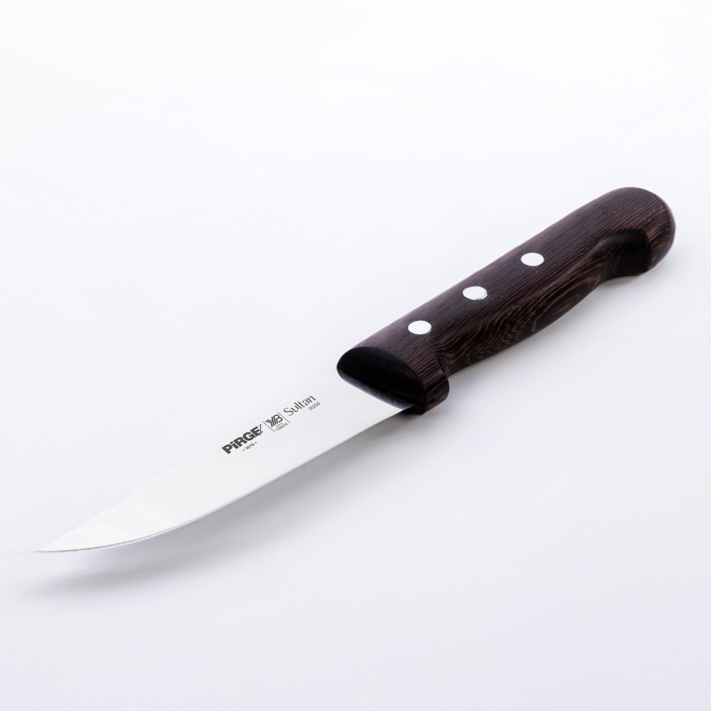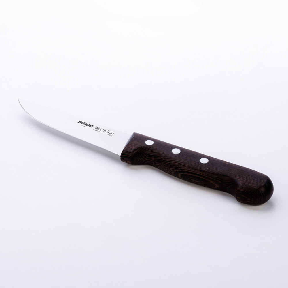 Sultan Kasap Bıçağı No.0 12,5 cm ürünümüz kalın ve güçlü çelik yapısı, doğal ahşap, üç perçinle sabitlenmiş sağlam sap kısmı sayesinde işlerinizi çok kolaylaştıracaktır! Kullanımınıza uygun bir ölçü, kalınlık ve sap modeli seçtiğinizden emin olun, etleri ve sebzeleri ne kadar rahat kestiğinizi gördüğünüzde bize hak vereceksiniz.