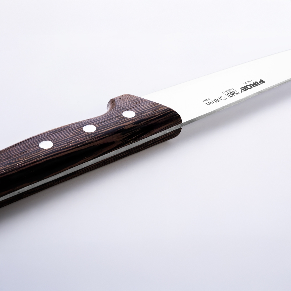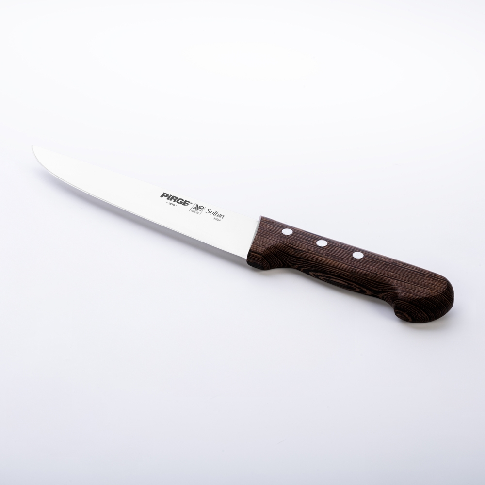 Sultan Kasap Bıçağı No.4 21 cm ürünümüz kalın ve güçlü çelik yapısı, doğal ahşap, üç perçinle sabitlenmiş sağlam sap kısmı sayesinde işlerinizi çok kolaylaştıracaktır! Kullanımınıza uygun bir ölçü, kalınlık ve sap modeli seçtiğinizden emin olun, etleri ve sebzeleri ne kadar rahat kestiğinizi gördüğünüzde bize hak vereceksiniz.