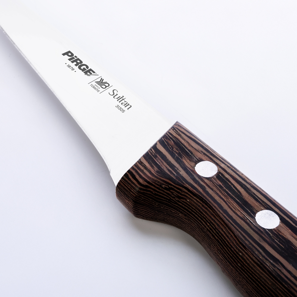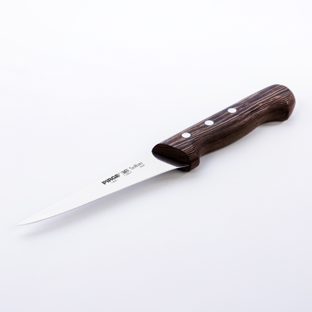 Sultan Sıyırma Bıçağı 14 cm kemiksiz etlere ihtiyacınız olduğunda yardımınıza koşacak. Burun kısmına doğru daralan çelik yapısı sayesinde tertemiz bir iş çıkarmanızda rolü büyük olacak.