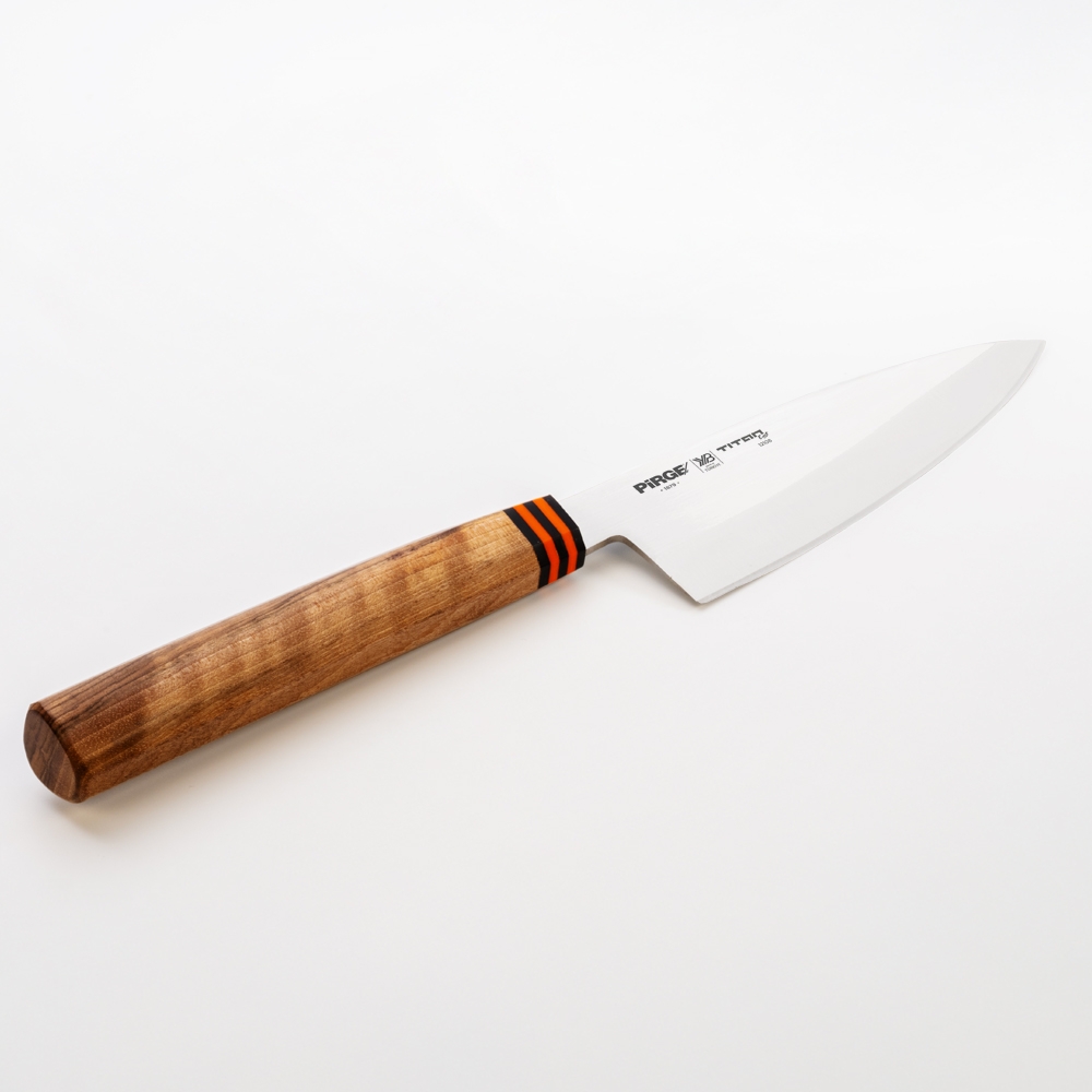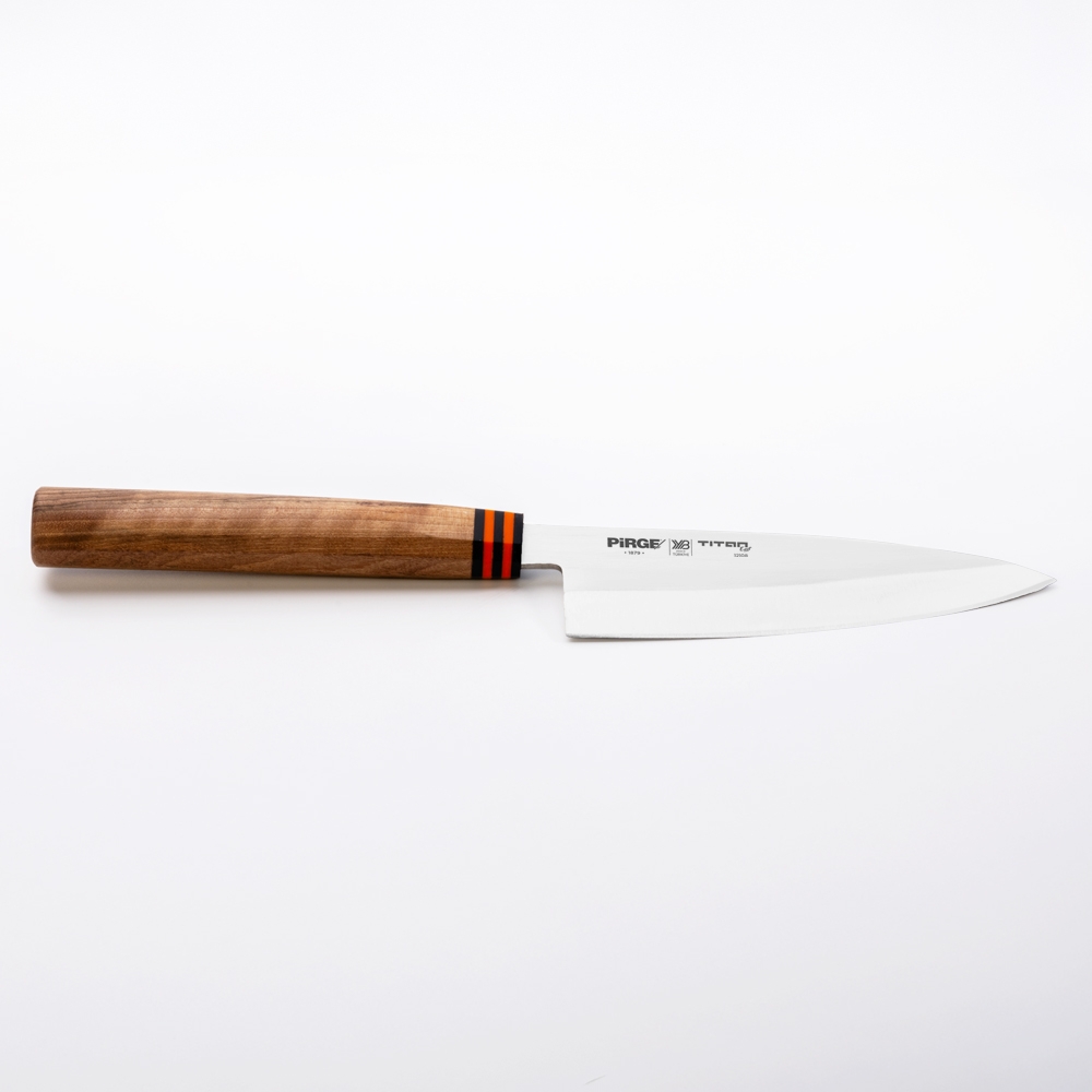 Titan East Doğrama Bıçağı - Deba 15 cm Japonların balık temizleme bıçağıdır. Güçlü çelik yapısı ve tek taraftan inceltilen ağız kısmı sayesinde işlerinizi çok kolaylaştıracaktır. Dikkat bu ürün Sağ El ile kullanım için tasarlanmıştır.