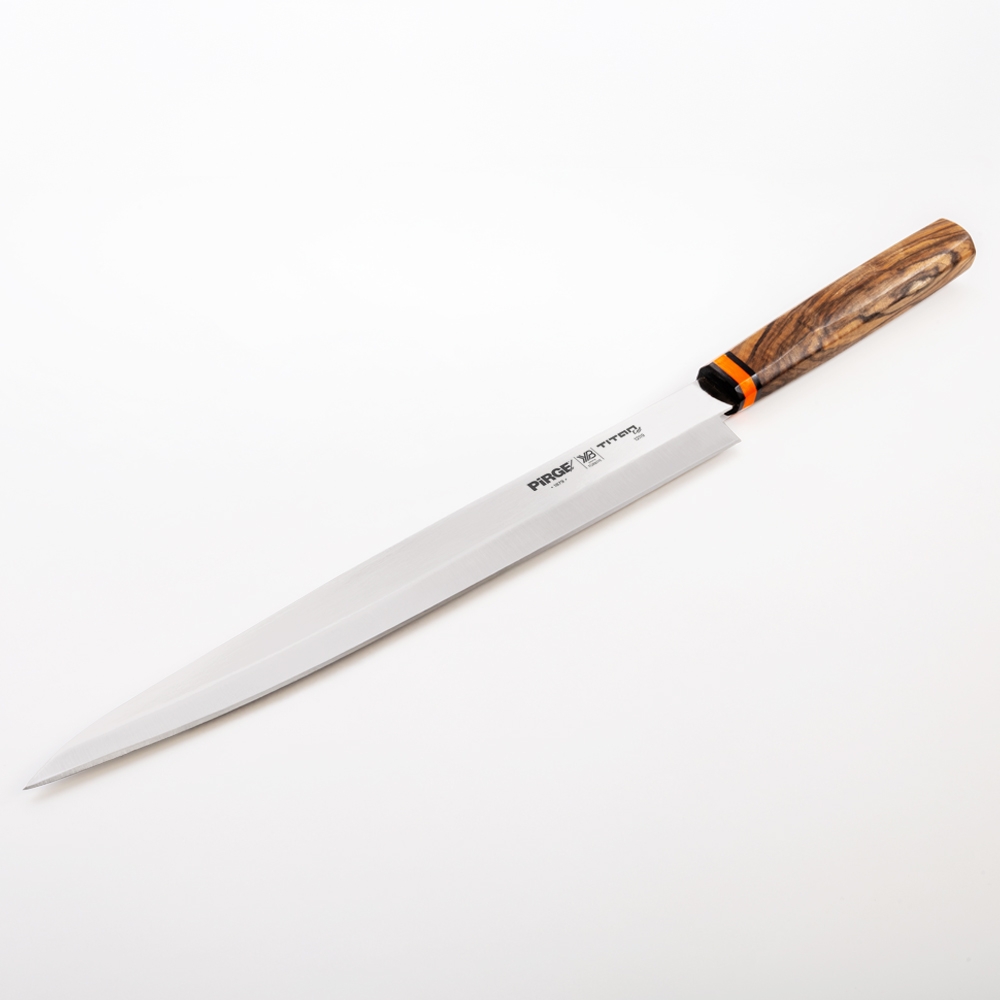 Titan East Suşi Bıçağı - Yanagiba 30 cm Sol El harika sarılmış suşilerin güzelce dilimlenmesi için tasarlanmıştır. Tek taraftan incelltilmiş güçlü çelik yapısı ve çok keskin ağzı ile parmaklarınızı koruyun. Dikkat bu ürün Sol El ile kullanım için tasarlanmıştır.